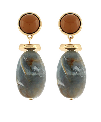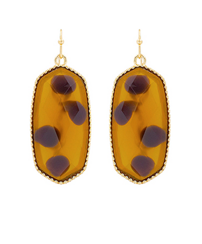 Tortoise/Gold Acetate Teardrop Textured Dangle Earrings