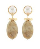 • Cream/Beige Mable Stone Oval Drop Earrings