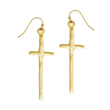 Elevate your everyday style with these striking Tall Cross Earrings, handcrafted in San Antonio, TX. Standing at 1 7/8 inches, they make a bold statement without overwhelming your look. Each pair features triple-plated 24K gold for lasting brilliance and durability. Perfect for layering with other pieces or wearing solo, these artisan earrings bring timeless elegance and spiritual significance to any outfit.