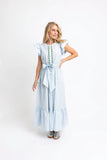 Elevate your wardrobe with this stunning Floral Stripe Ric Rac Trim Maxi Dress, designed for effortless elegance. The charming floral stripe pattern pairs beautifully with delicate ric rac trim detailing, creating a romantic, eye-catching look. A waist tie cinches your silhouette for a flattering fit, while the invisible zipper ensures a seamless, polished appearance. Perfect for garden parties, weddings, or any occasion calling for sophisticated style, this maxi dress combines timeless femininity with modern construction for a piece you'll reach for again and again.