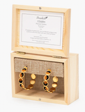 Color-blocked pheasant feathers, in rich caramel and charcoal grey, are hand-placed at alternating angles to create a subtle pattern around the earring. Naturally neutral, you can pair these stunning black and brown earrings with any ensemble.