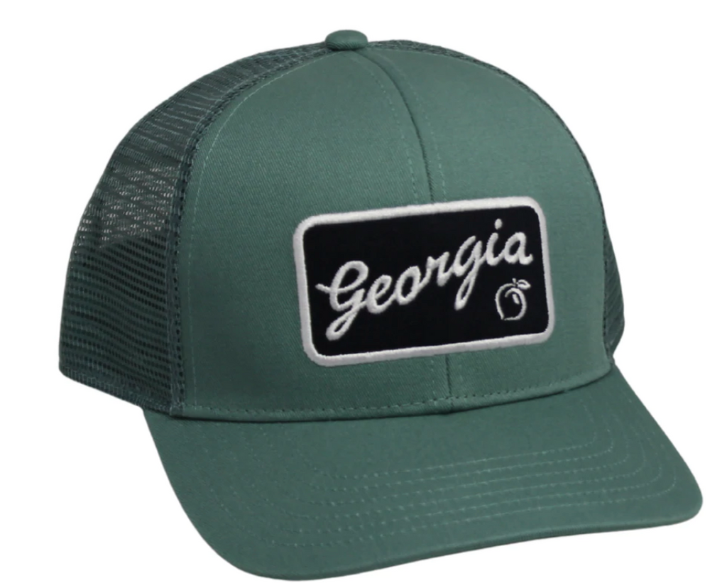 A new spin to an old classic: our immensely popular Mesh Back Trucker Hat is available in a variety of styles and colors. The Seafoam Georgia Script Trucker Hat is the perfect go-to with a pop of color.