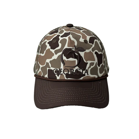 Introducing the Performance Camo Hat! Stay comfortable and blend into the Georgia outdoors like a master outdoorsman. This hat offers superior performance as well as a unique, old-school camo style.