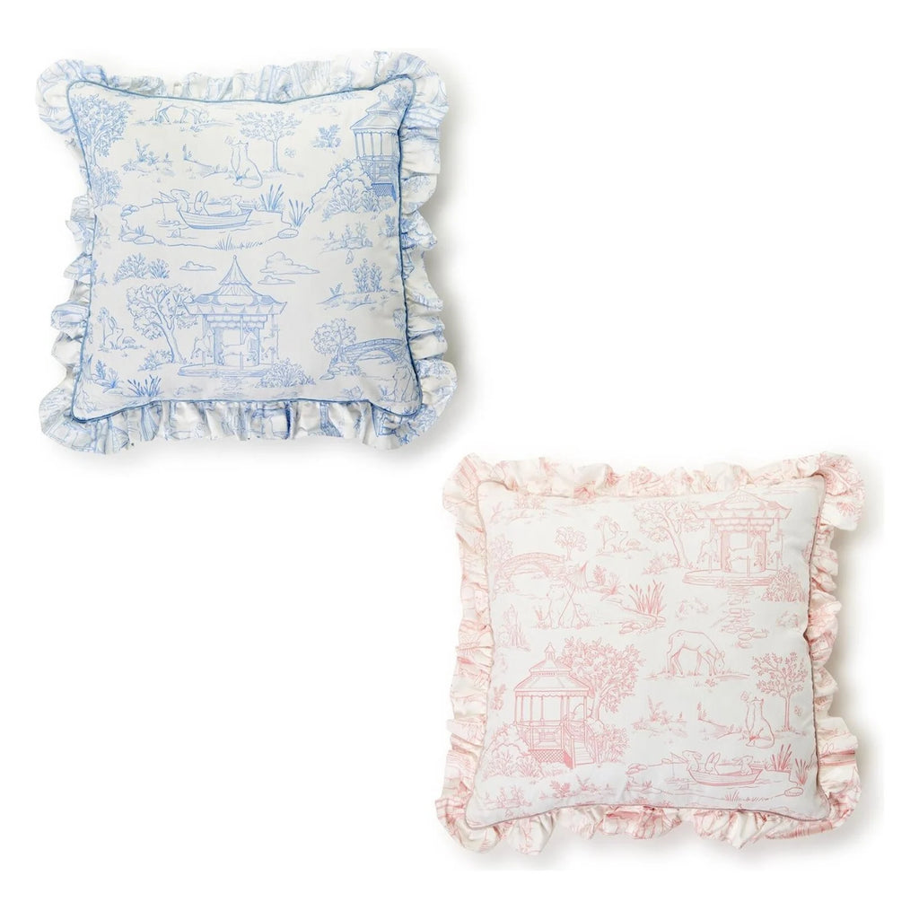 Introducing the sweetest addition to your little one's room - our Baby Animal Toile Decorative Pillow. With charming ruffle and piping details, this pillow is not just an accent; it's a cozy companion ready to add a touch of adorable charm to nurseries and playrooms alike.