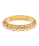 This Vintage Gold/Multi small stone bracelet is a must-have accessory for any elegant and sophisticated individual. Its simplicity adds a touch of timeless beauty to any outfit, and its versatility makes it suitable for anyone. Elevate your style with this exquisite piece.