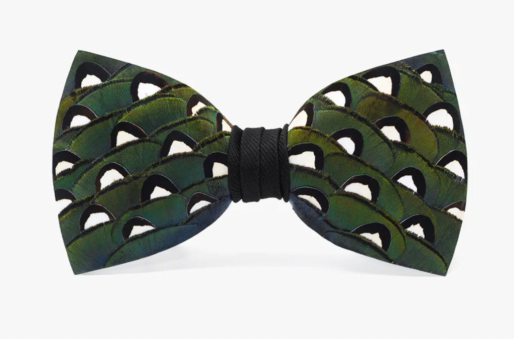 - Feathers for bow ties are hand-selected, giving each finished piece unique coloring.