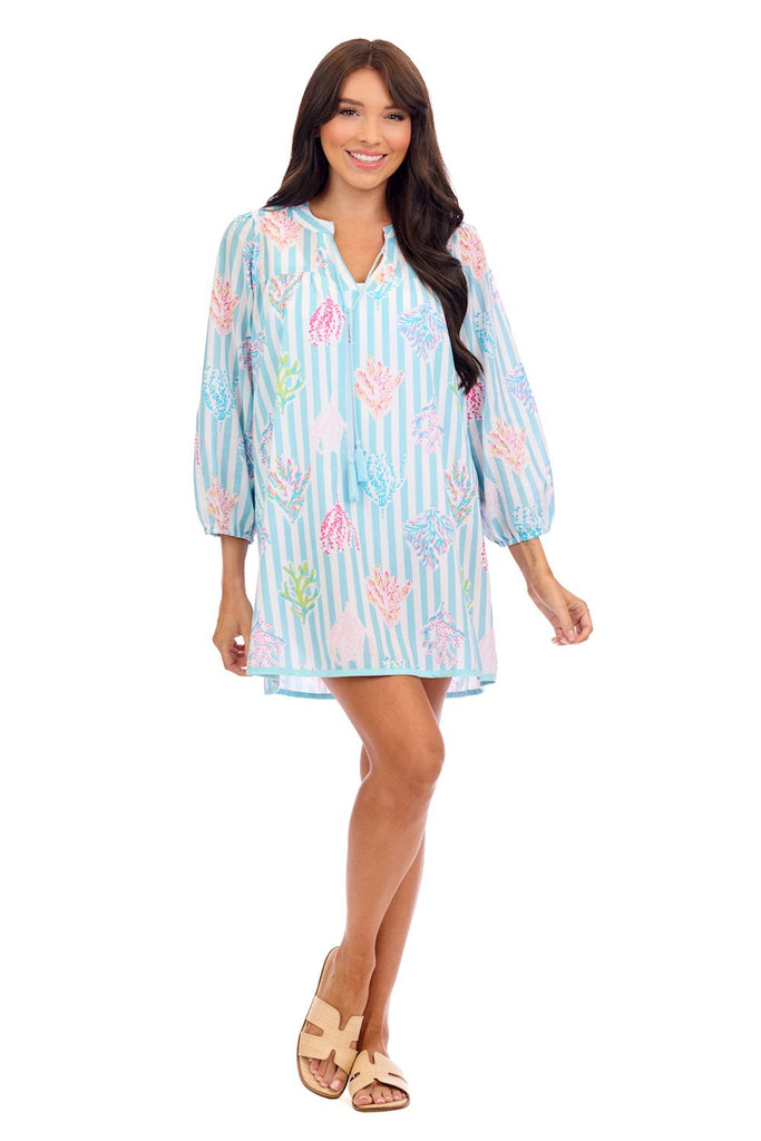 Dive into effortless beach style with this charming cotton voile cover-up. The breezy fabric drapes beautifully over your swimsuit, while coastal-inspired prints transport you straight to the shore. A flattering V-neck is finished with playful braided tassel ties, and contrast hem binding adds a polished touch. Perfect for poolside lounging or strolling to the beach—comfort meets coastal chic.