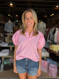 The Jamie Top is designed to flatter every figure with its thoughtfully crafted silhouette. The pinched waist creates definition while the relaxed fit through the body ensures comfort and ease of movement. Perfect for spring days, this versatile piece transitions seamlessly from casual outings to weekend gatherings. Pair it with your favorite jeans, skirts, or trousers for an effortlessly polished look that works year-round.